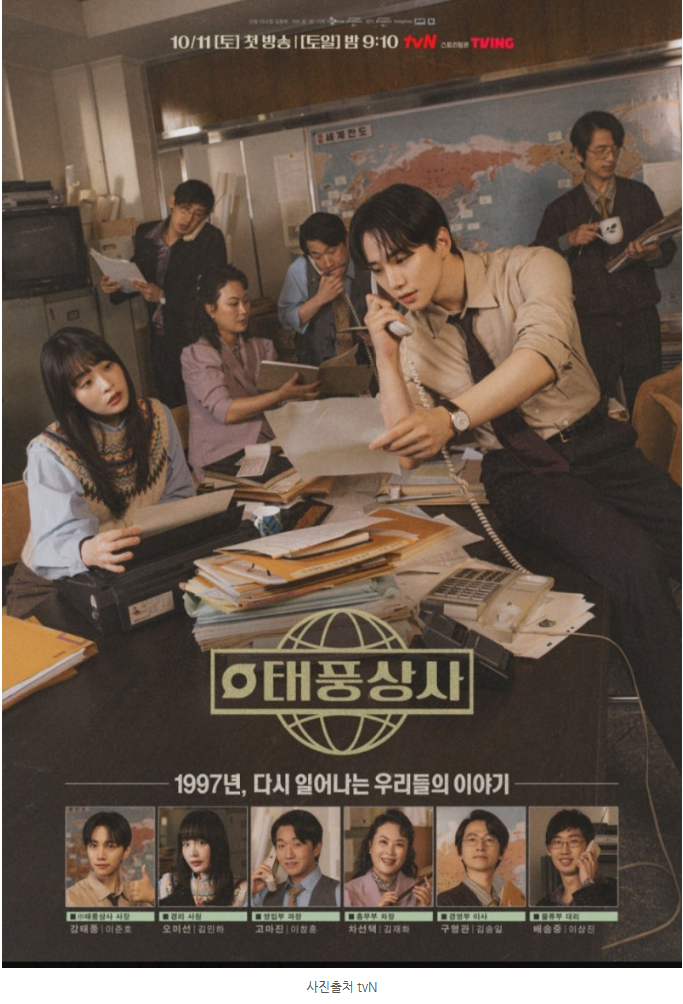 ‘태풍상사’는 웹툰/소설이 아닌 완전 창작 드라마로, 1997년 IMF 외환위기를 배경으로 현실적인 이야기를 다룹니다.