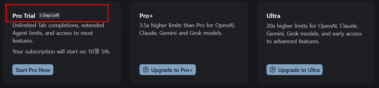 1. 커서AI 구독 방식은 어떻게 되어 있을까?