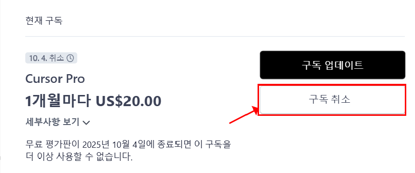 2. 커서AI 구독 취소 방법 (공통)