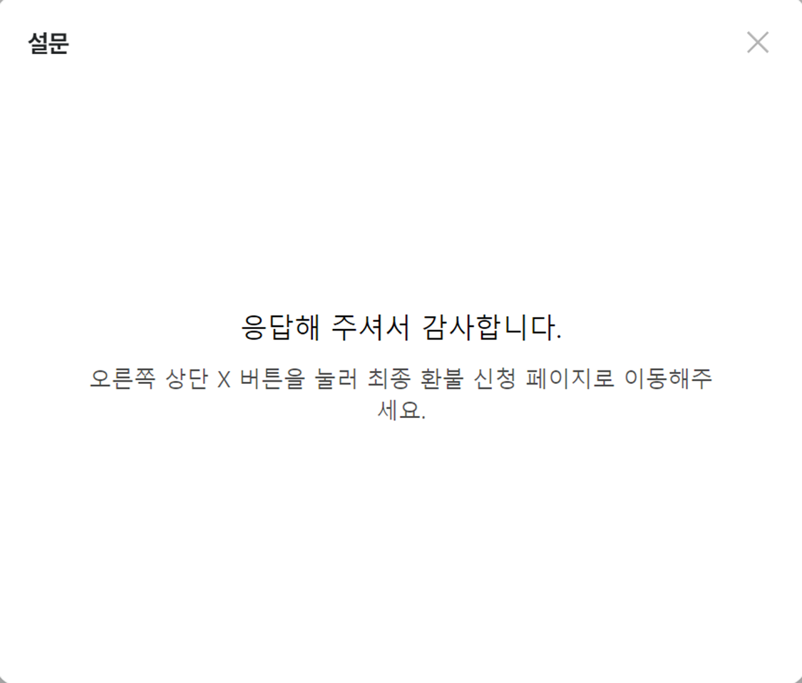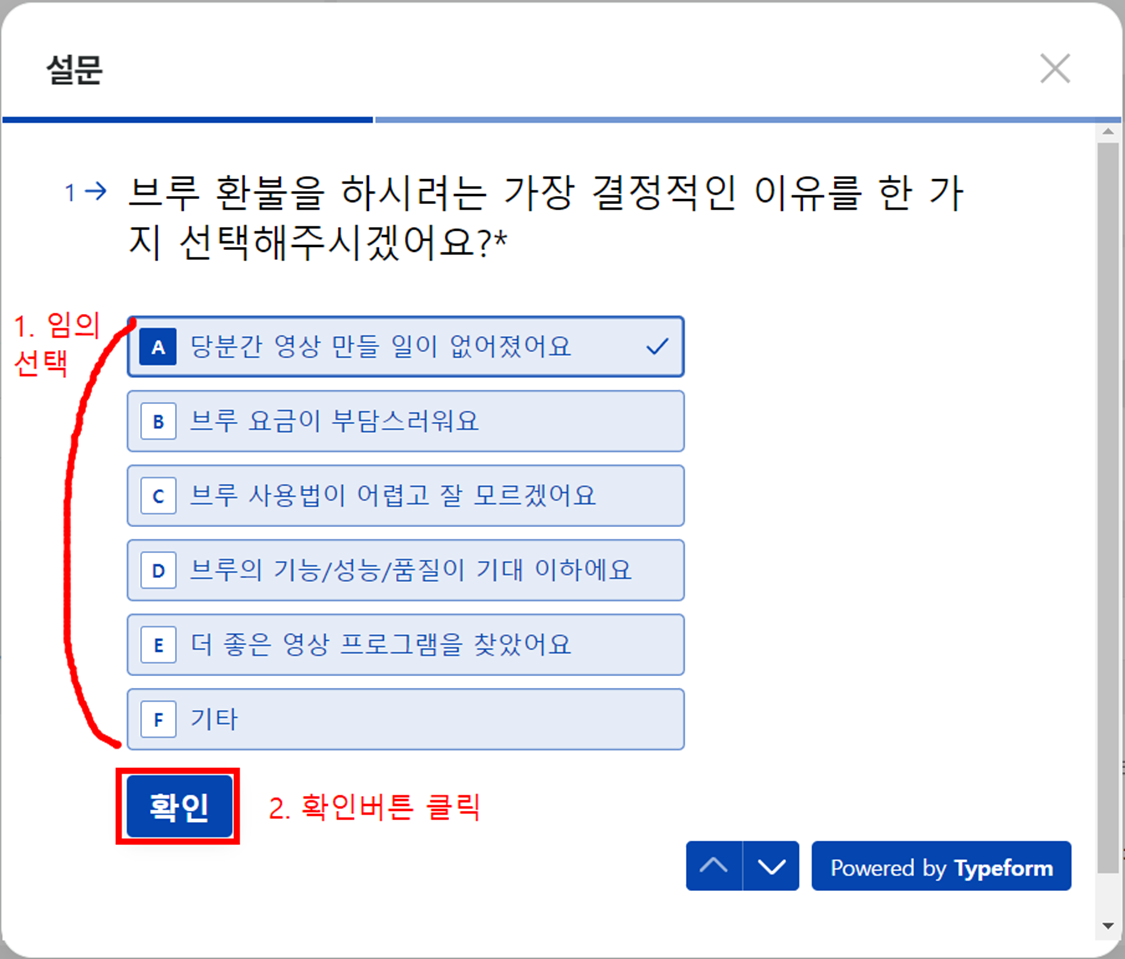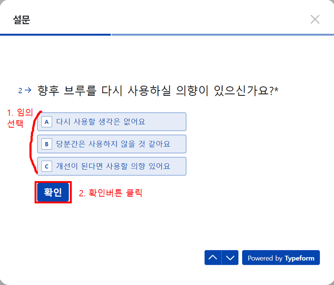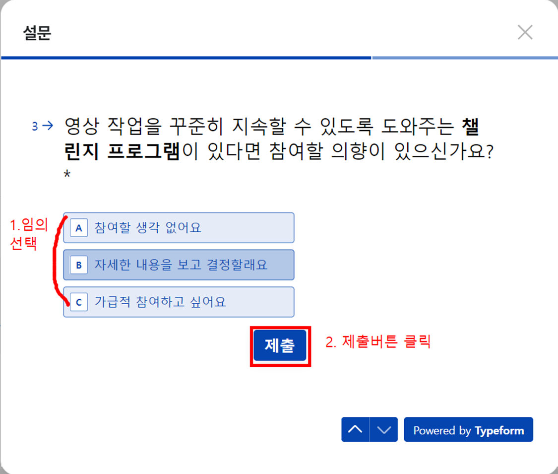 - 간단한 설문조사 항목 응답 후 [제출]