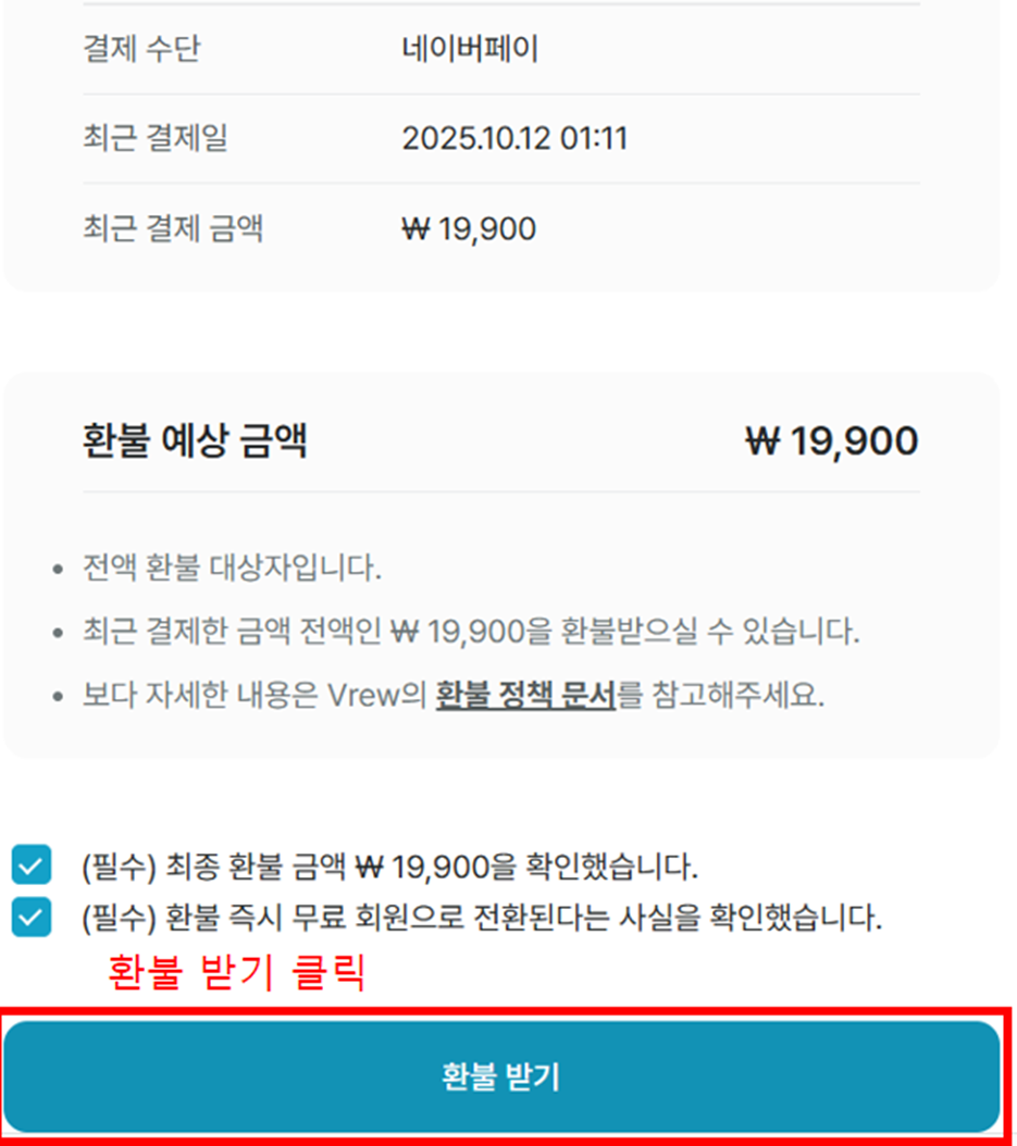 ✅ 환불은 자동 처리되지 않으며, 아래 절차 따로 진행 필요