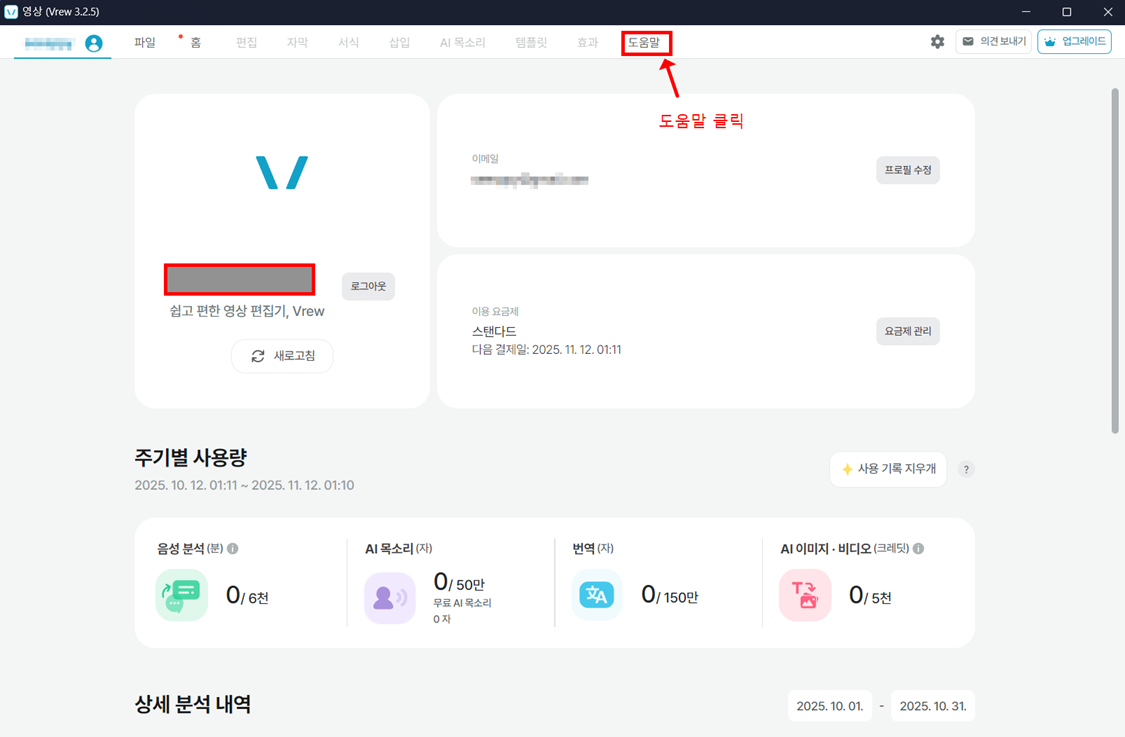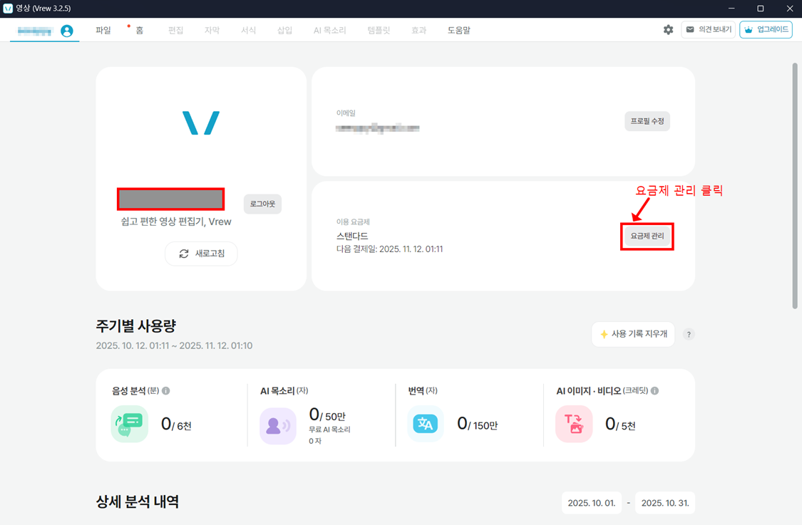 - [결제 및 구독] > Vrew 선택 > 구독 취소